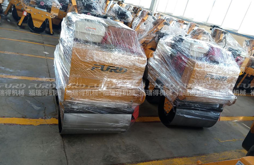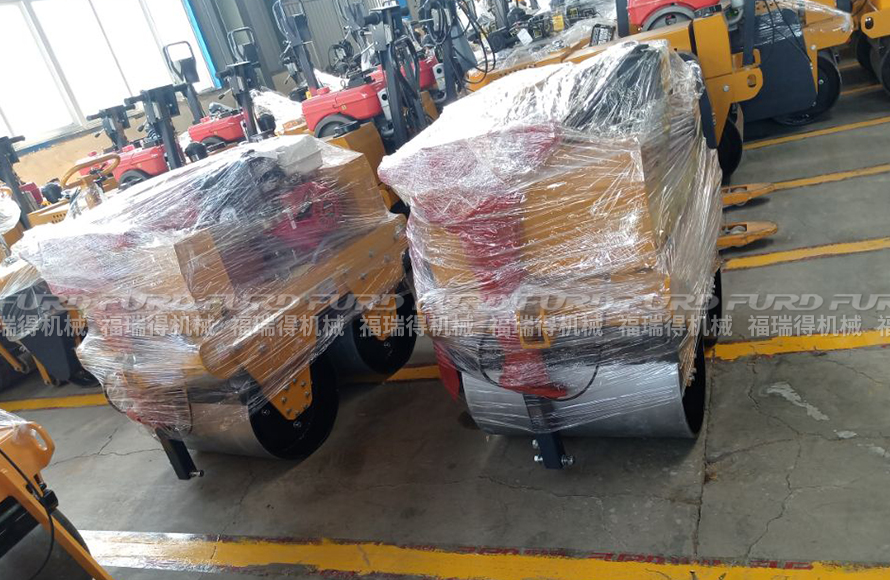 福瑞得2臺手扶雙鋼輪壓路機(jī)打包發(fā)往菏澤市